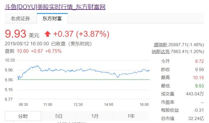 截至发稿,斗鱼周二盘前价格为9.93美元,涨幅为6.75%。