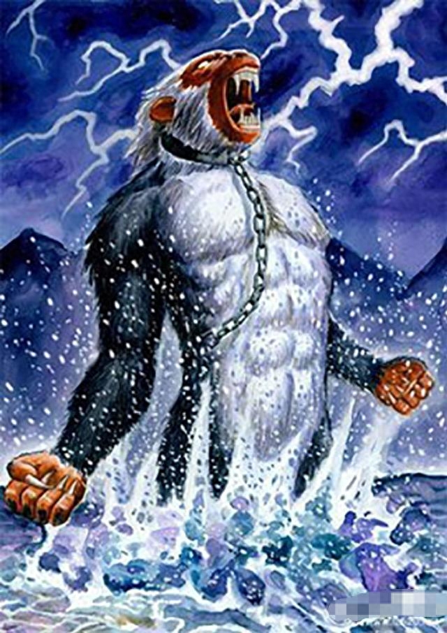 无支祁,上古神兽,四大灵猴之一,善于变化,力敌九龙,且善于控水,就连水神共工也不敢称在控水之术上稍胜他一筹。他的形状像猿猴,还有火眼金睛。头颈长达百尺,力气超过九头大象,常在淮水兴风作浪,危害百姓。