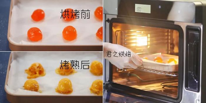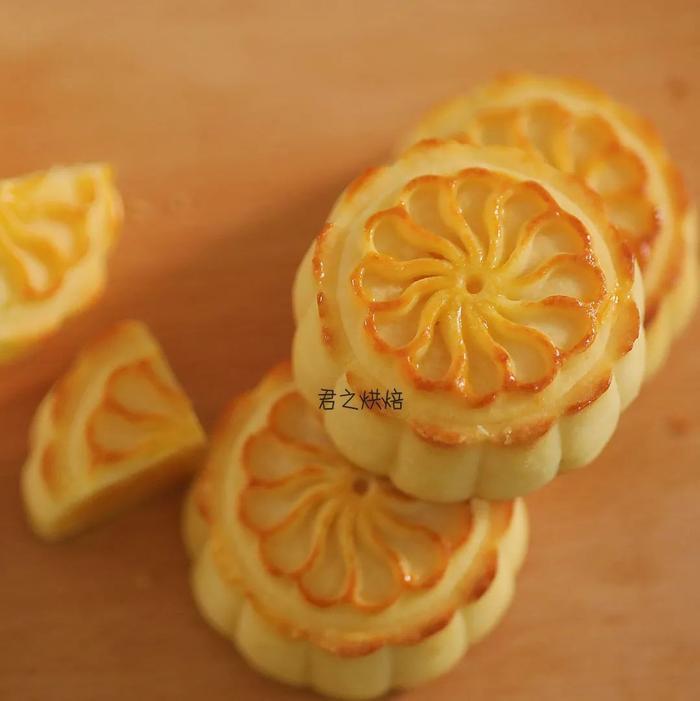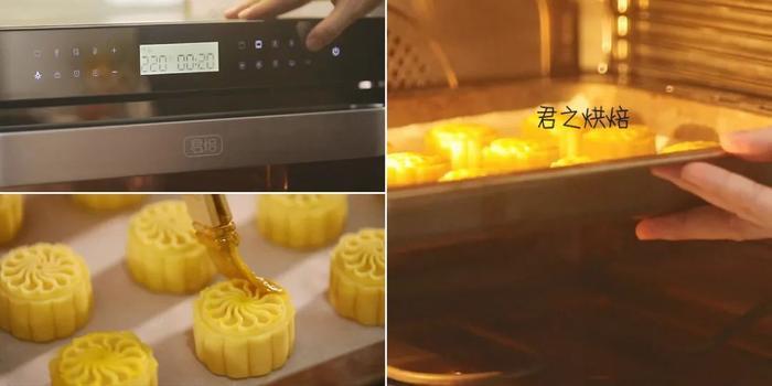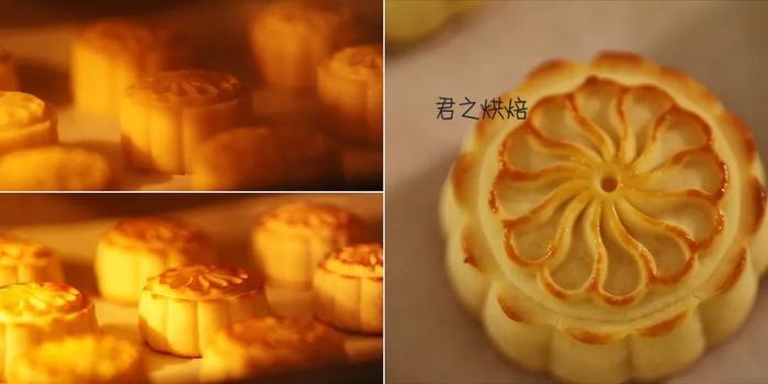 注意控制火候。烤过头了月饼皮会爆开,皮馅会分离。