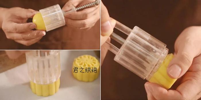 这个月饼成品只有40克左右,但是要使用50克的月饼模具(因为同重量的奶黄月饼体积比广式月饼要大一些)。