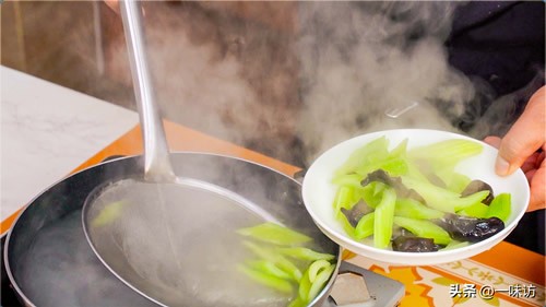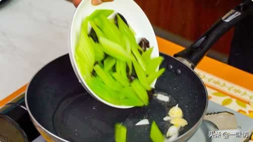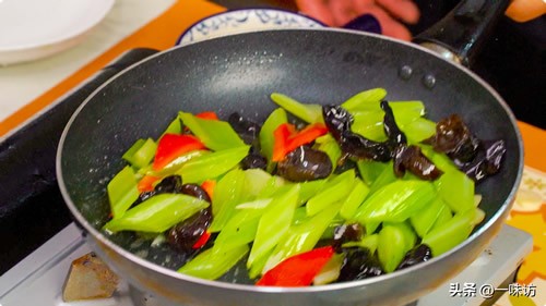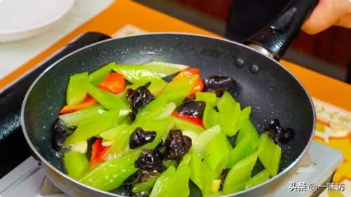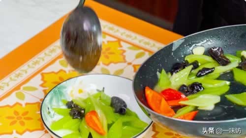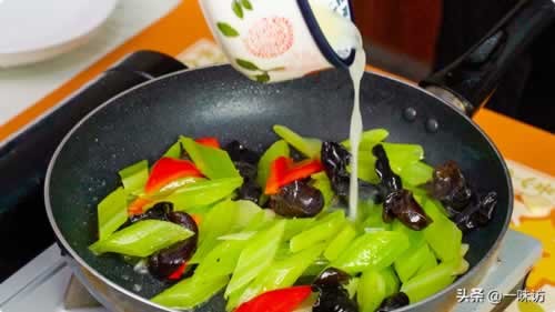 3、最后清炒芹菜,放入料汁时,难免在料碗中有所剩余,有的人喜欢用清水涮一下碗,当然如果能准确把握水量不多的话,可以采取;但也有其他办法来处理这一问题,比如再倒入的时候,缓慢倒入,并用炒具进行搅动式的倒入,并将锅里的芹菜或木耳盛到料碗中,用炒具撑着旋转一圈,再度倒入锅中即可。