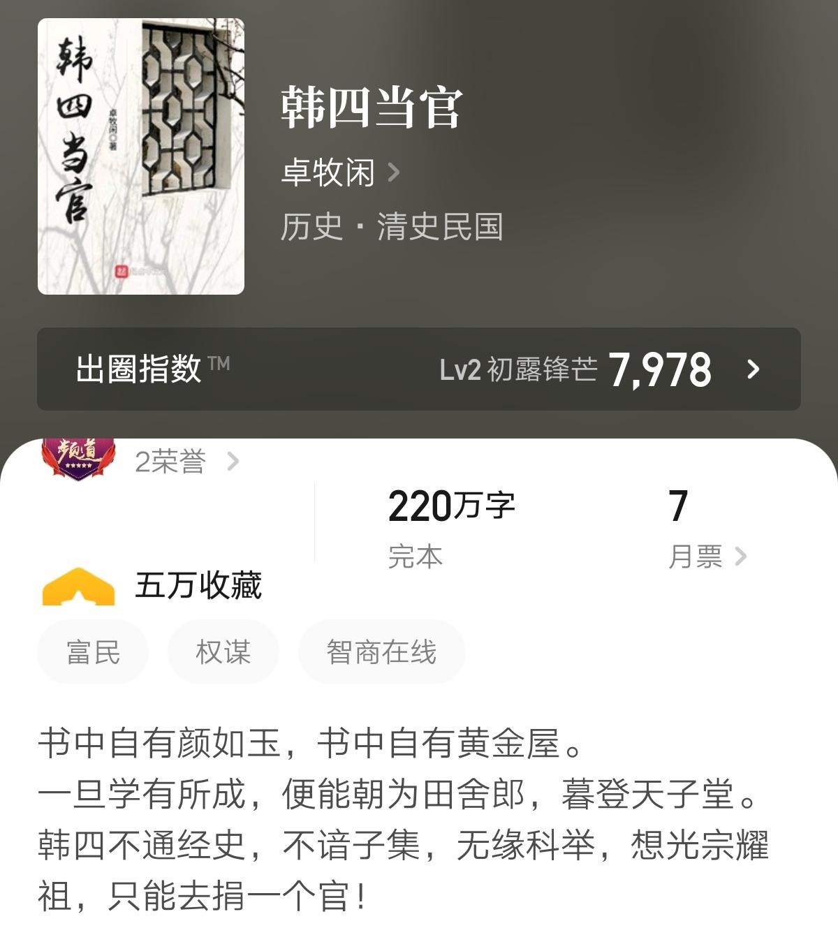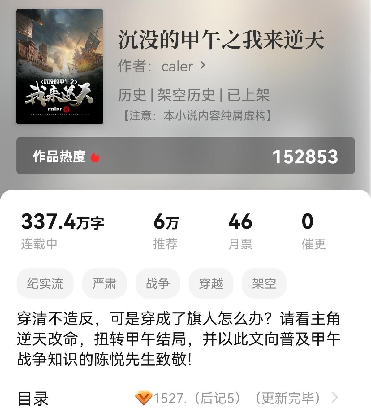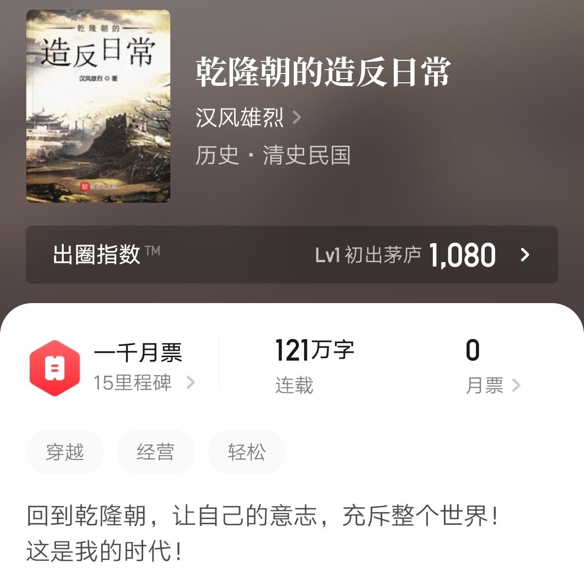 2、目前少有还在连载的清朝文了,剧情内容一般,粮草吧,喜欢的朋友可以看下。