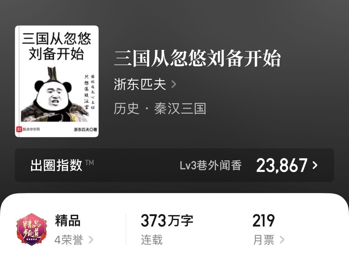 PS:还有一本名字相似的三国文,臊眉耷目的《三国从单骑入荆州开始》,也连载100多万字了,主角是刘表的儿子,写得也不错(也偏向谋略),老铁们可以一同观看。