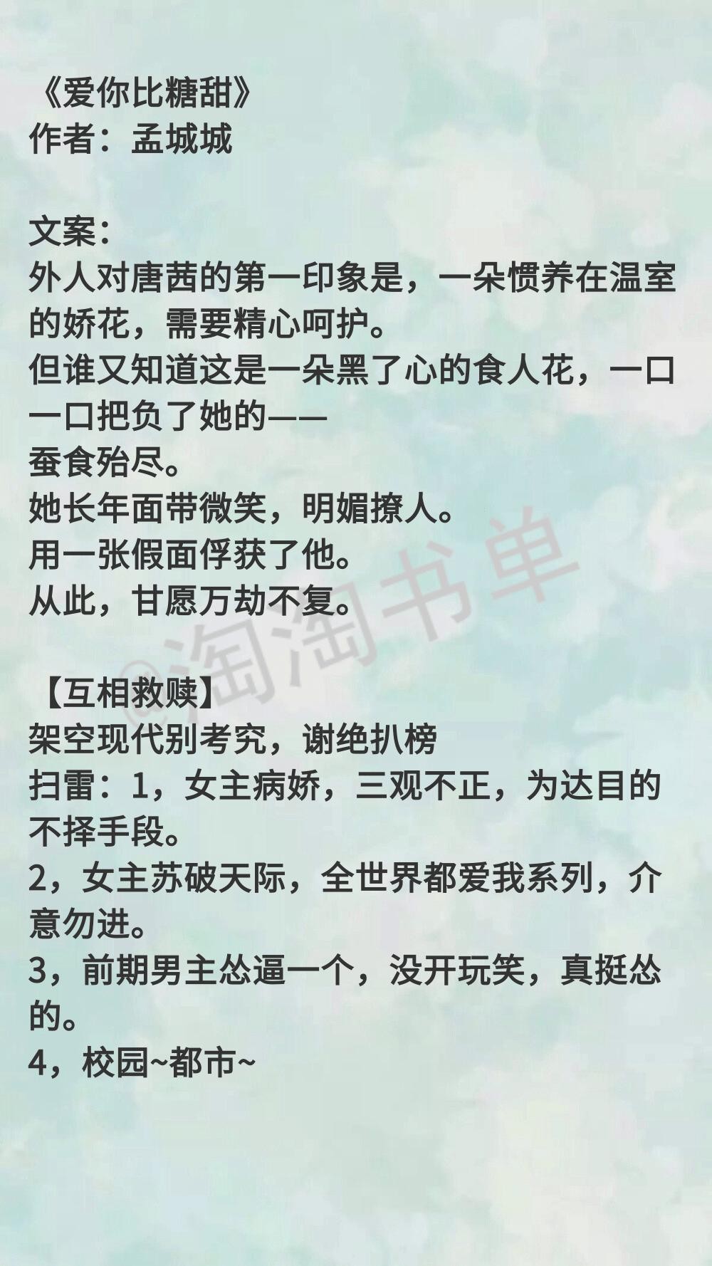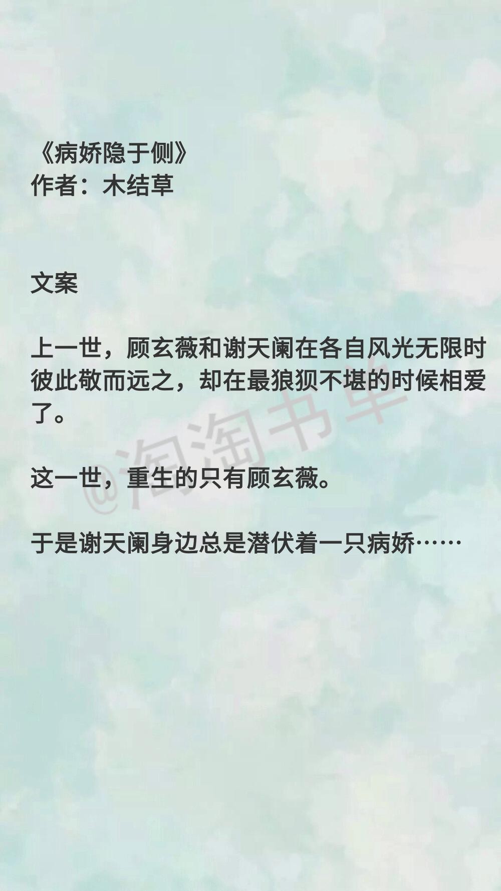 淘子有话:男女主前世在最落魄的时候相知相爱,男主最终为女主而死,女主重生后看不得任何女子在男主身边出现,男女互宠,一路甜到底。女主人前高冷女神,男主面前忠犬护食,爱吃醋。男主最初纠结于女主喜欢的是前世的他,还是现世的自己,不过后来两世记忆融合就he啦~
