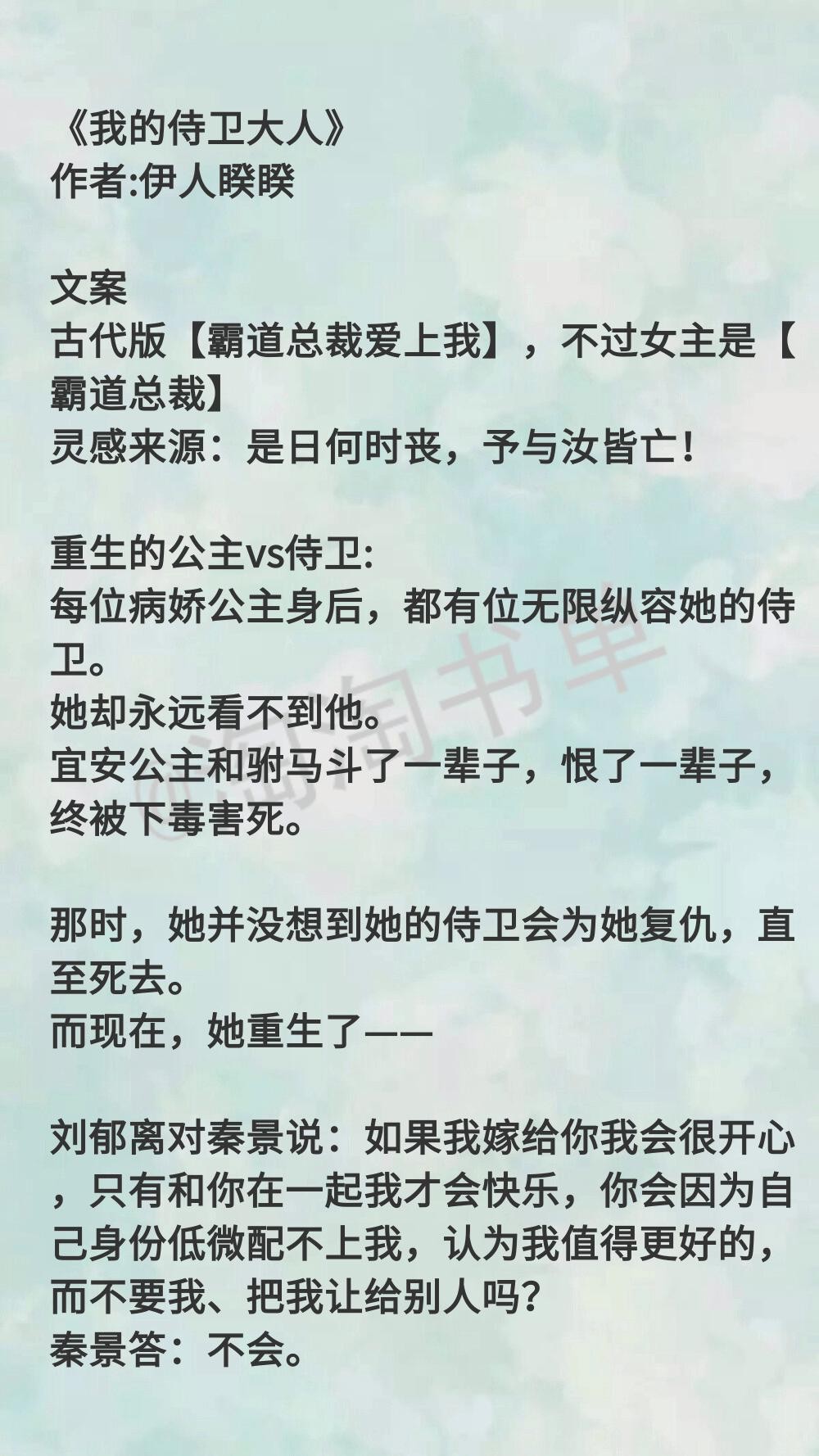 淘子有话:病娇公主vs忠犬侍卫。女主是个公主,前世和丈夫互相折磨,爱上了被丈夫派来监视自己的侍卫,最后被丈夫毒死。重生之后身体特别差,而且性格病娇,想了办法,把上一世丈夫的贴身暗卫也就是男主敲晕带回家,然后开始了撩汉之旅。作者文笔不错,从头甜到尾、难得的是甜中带笑~
