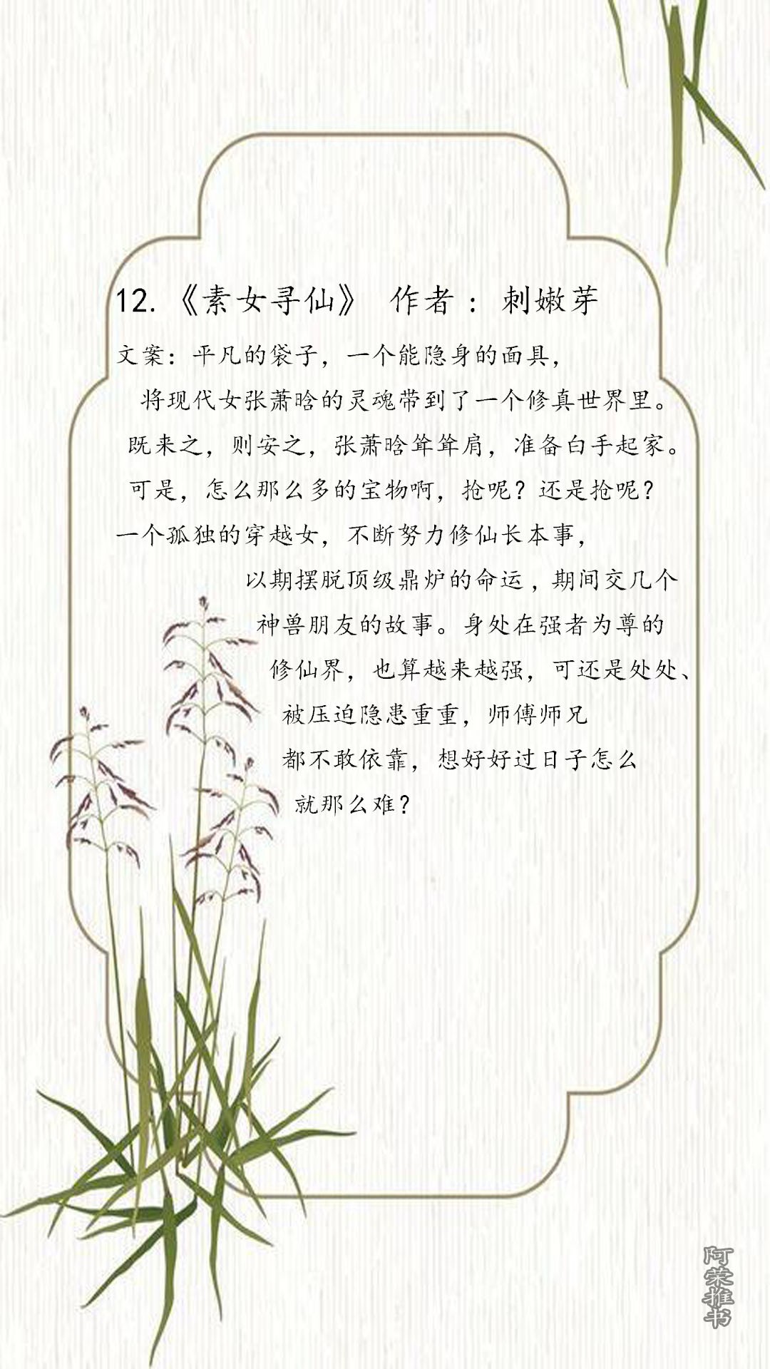 今天小编整理了以往看过的女频休仙小说。喜欢就请转发和收藏!