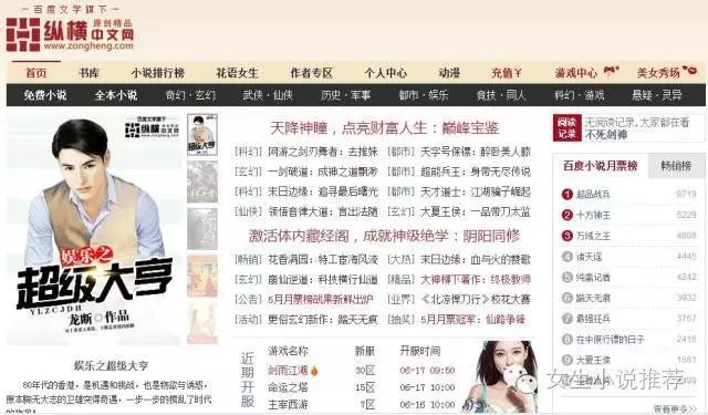 纵横中文网成立于2008年9月,是百度文学旗下的大型中文原创阅读网站,坚持原创精品的建站理念,致力于本土优秀文化的传承、革鼎、激扬与全球化扩展,力求打造最具主流影响力与商业价值的综合文化平台,扶助并引导大师级作者与史诗级作品的产生,推动中华文化软力量的崛兴。
