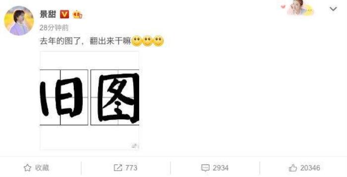 但是景甜随后发了微博,配上”旧图”二字的图片,还称:”去年的图了,翻出来干嘛”。