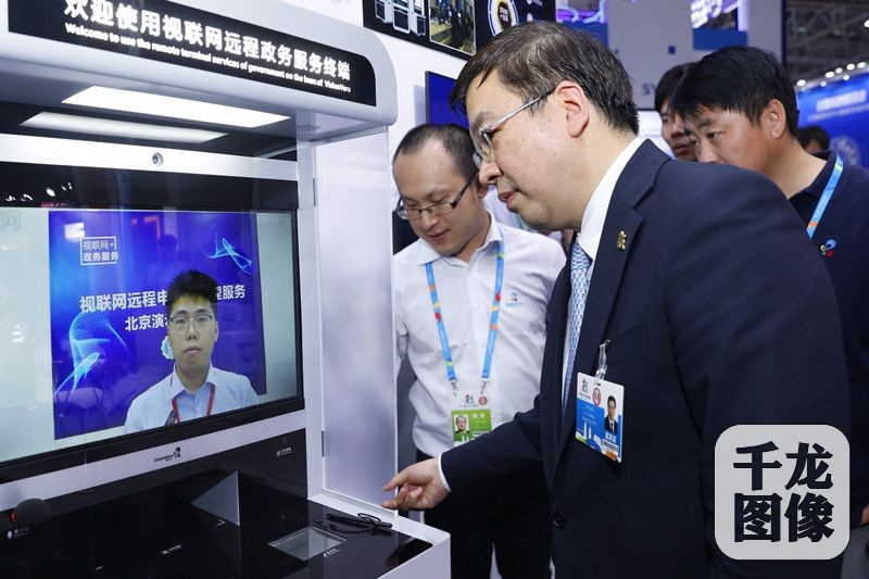 图国办电子政务办公室主任卢向东亲身体验视联动力远程代办业务情况。千龙网发