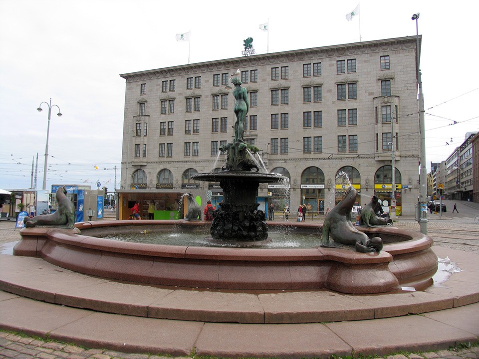 阿曼达铜像(Havis Amanda)铜像位于芬兰赫尔辛基露天市场的花市旁,是一座少女阿曼达青铜塑像,被四头海狮环绕在喷泉之中。她面向大海,左手托腮,静静地凝视着芬兰湾。这座被人们誉为“波罗的海的女儿”铜像建于本世纪初,已经成为赫尔辛基市的象征之一。