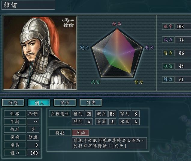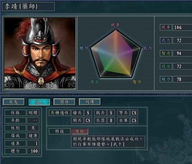 兵仙 和韩信一样 但李天王 有宝物特技料敌 加自身94的智力 那就副将搭配里 不需要再配 智力副将