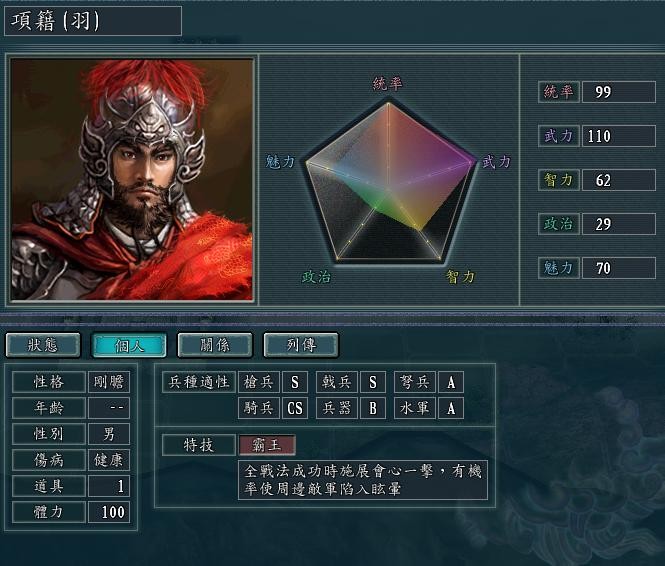 按特技霸王来说 戟兵更合适西楚霸王 作为输出坦克 能站的住才行 大兵团作战时 戟兵的抗击打能力和骑兵比,不光是表面的防御数据那么点差距 皮厚太多了。配合带金刚副将 当然队伍中要有高智力的副将。霸王不光全暴击还带控制