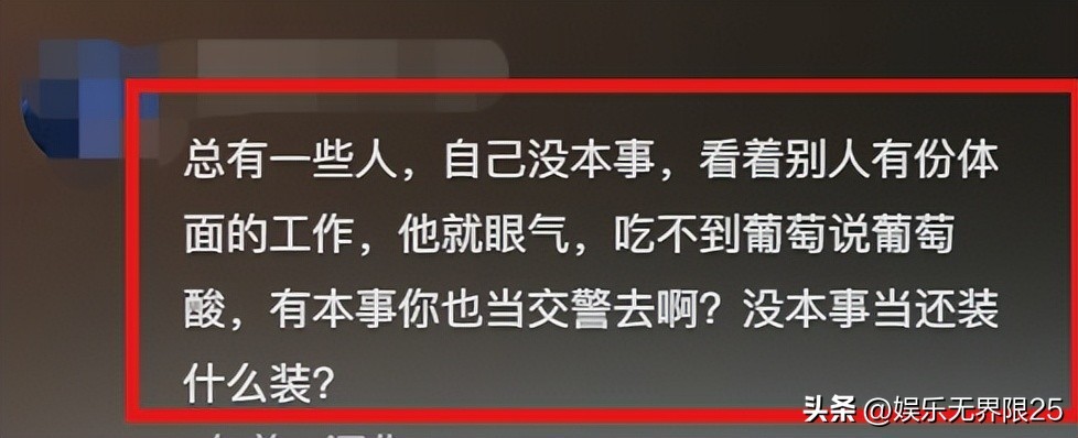 有些人就是闲的,吃饱了撑的!人家走路也瞎评论,这是人家的走路习惯,每个人的走路姿势都不一样,就因为人家是个警察就喷人家,太没素质没道德了!