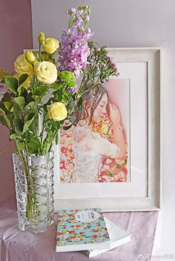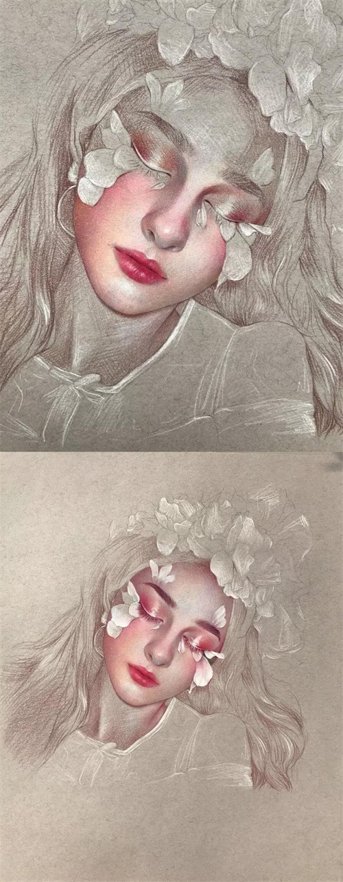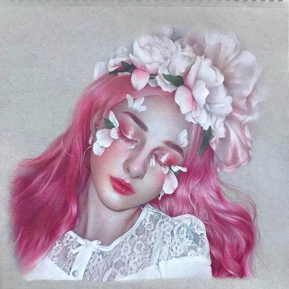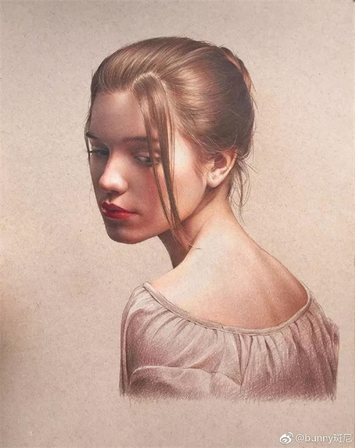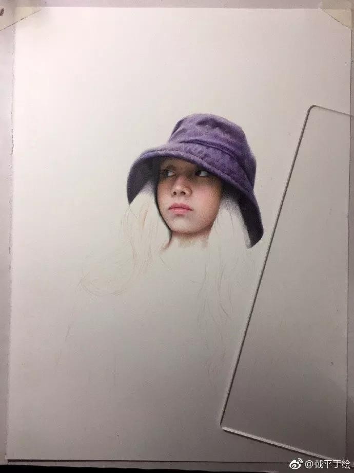 她的绘画功底很熟练,画风很成熟,她的彩铅作品很细腻