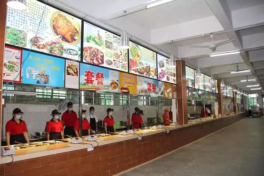拥有三间食堂,男女宿舍中间隔着的大饭堂,国际部下面一个食堂,正对国际部左边有一个三饭堂,菜式种类多,味美价廉,用餐消费是丰俭由人。学校开设校园超市,红茶馆、水果吧以及文具店,满足学生丰富多样的饮食选择。