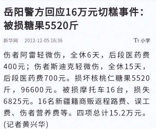 2012年,湖南岳阳市发生了一起因切糕引发的纠纷事件,据当地警方通报,一名村民购买切糕时,与商贩发生肢体冲突,导致双方轻伤,切糕损坏约16万元。