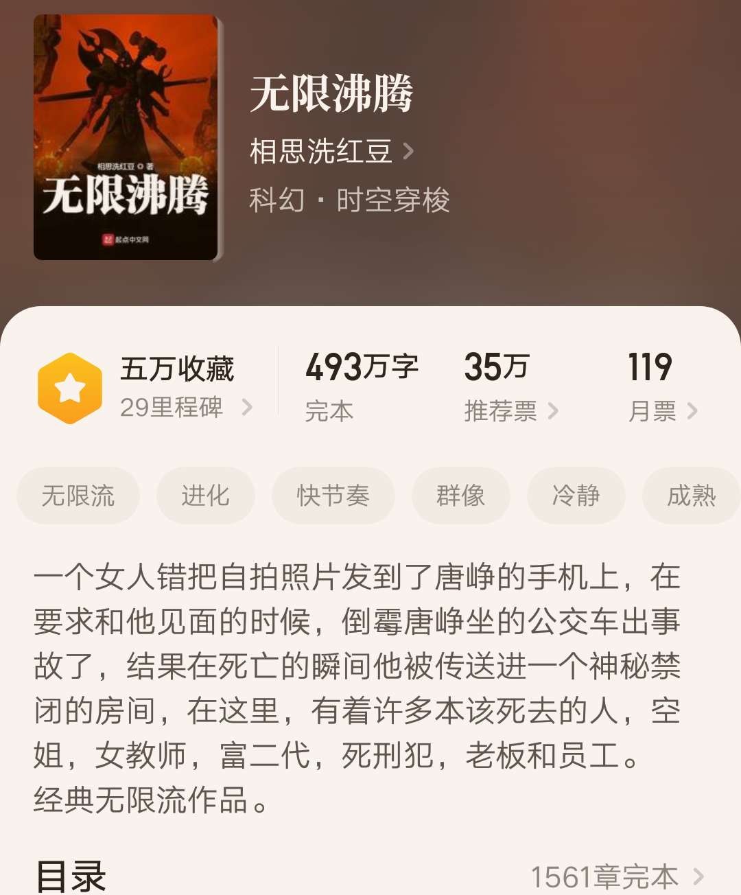 这本小说是无限流的开山之作是没有什么质疑的,它很明确地确立了无限流小说的基本模式。虽然这本小说是无限流最初期的作品,但是内容却毫不生涩,文笔也不会稚嫩,即使是拿到现在来看,也是一部不可多得的经典之作。