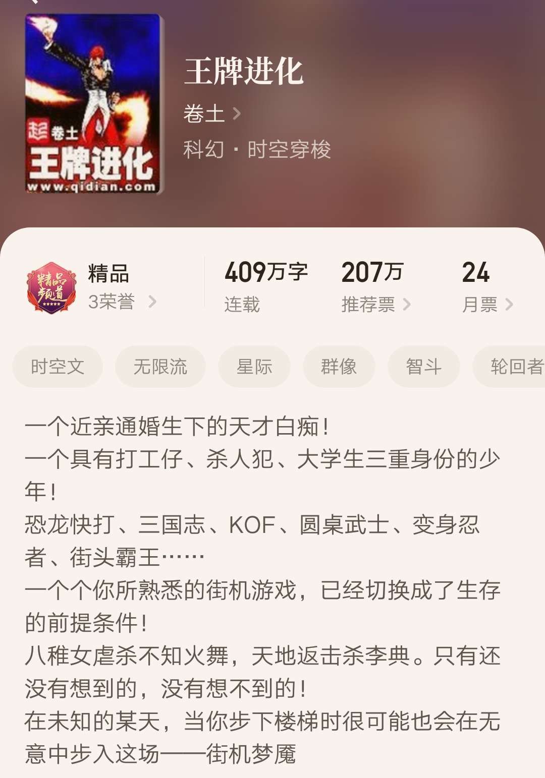 与《无限恐怖》相比,这本小说虽然成型晚,但是被认为是随之而来的巅峰之作,并且公认开创了无限数据流。小说的打斗情节增加了剧情的看点和爽感,而智斗方面则被书迷们认为超越了《无限恐怖》。不知道你们是不是认同这一说法呢?