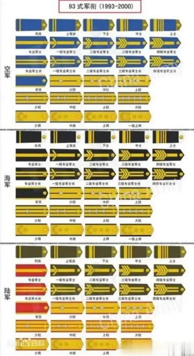 国际接轨:军官衔级从3等11级调整为3等10级(取消"一级上将")兵种细化:新增航空兵、雷达兵等7个专业勤务符号(《1993式军衔条例》)科技暗码:海军袖章引入0.1毫米微雕工艺,肉眼难辨的锚链纹暗藏防伪编码