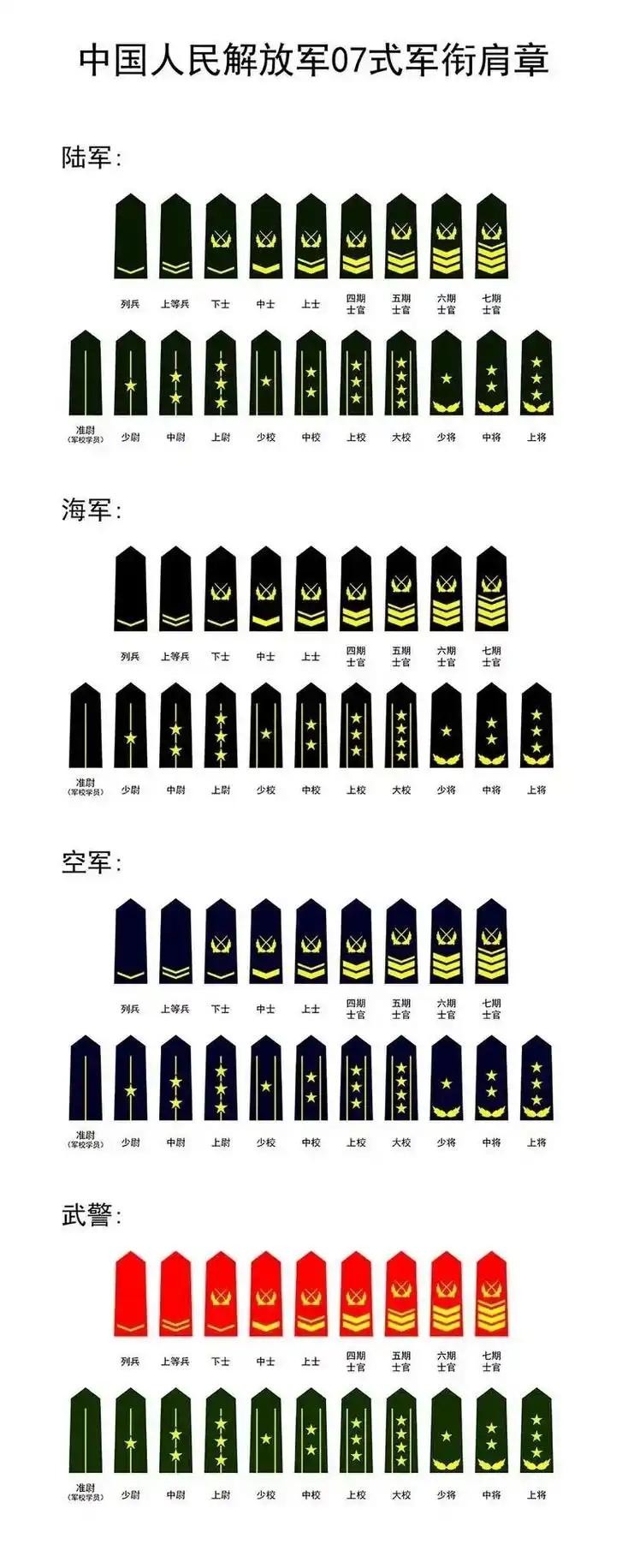 大将肩章四颗星,比苏联少一颗以示谦逊准尉单独设级,安置20万抗战老战士女军官肩章加缀金色五角星,全球首创