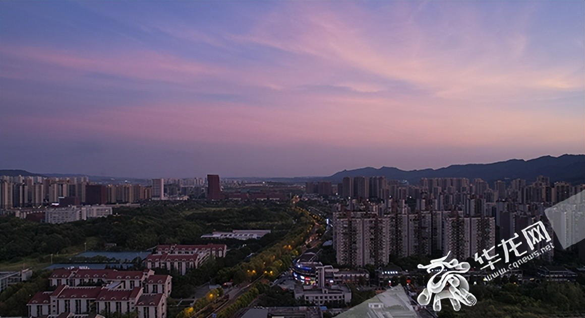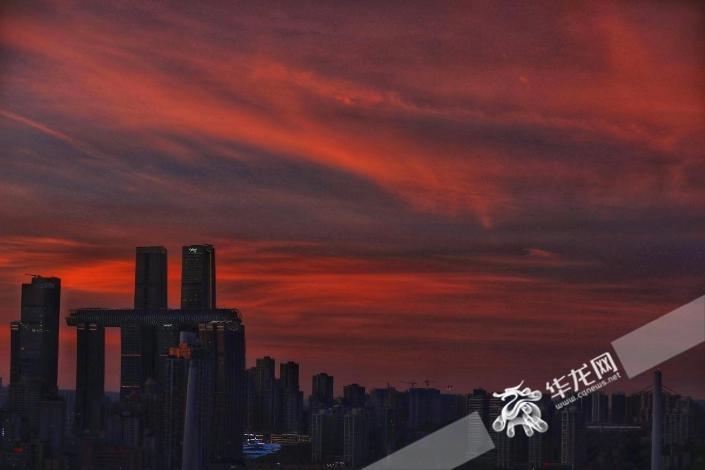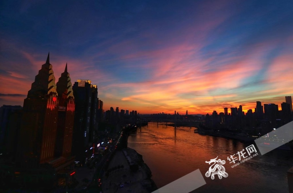 今日傍晚,中心城区出现绚丽多彩的彩霞。华龙网-新重庆客户端 首席记者 李文科 摄