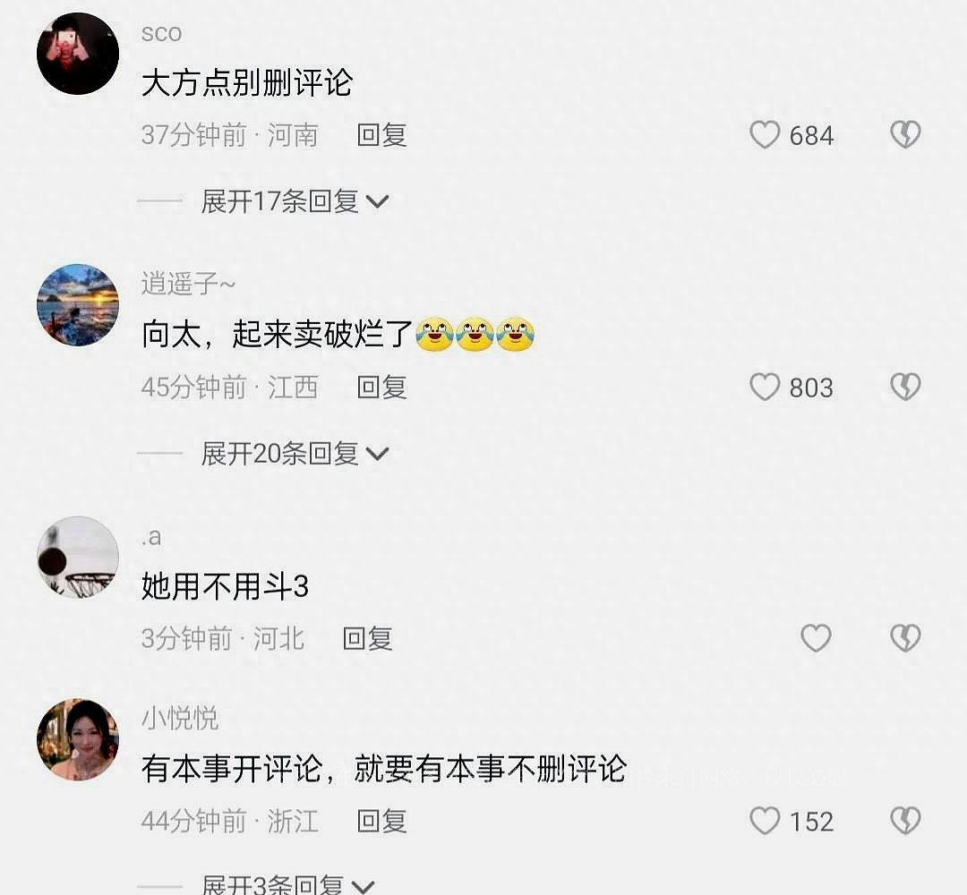 昨日,经历了六天的静默,向太太再次打开评论区。然而,她意想不到的是,网友们迅速涌入,带着情绪和不满的言辞,对她以前的尊敬犹如云烟般消散。
