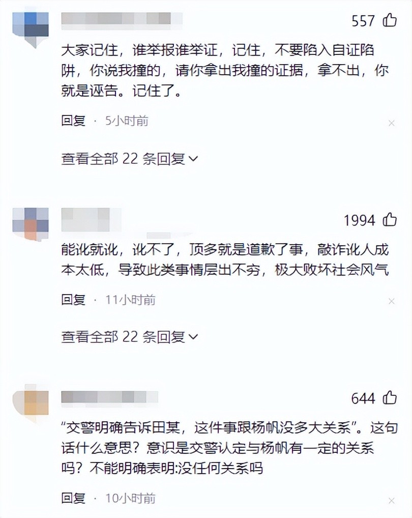 也有人呼吁杨帆应捍卫正义,对田某采取法律手段。