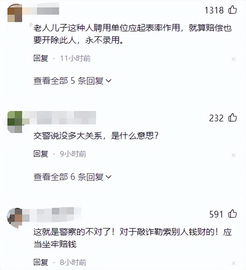 这时老人的儿子田某赶到,交警将情况告知田某,还让老人签字确认。出人意料的是,田某不但对交警的专业工作表示不满,还要求杨帆必须跟着去医院,并要其承担赔偿责任。