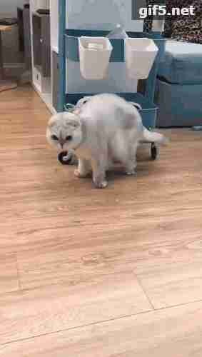 是因为后腿疼痛导致无法像正常猫一样行动!