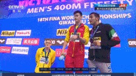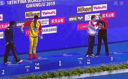 7月14日,中国奥运冠军孙杨男子400米自由泳决赛中强势摘金,但在赛后颁奖仪式中却出现了这样尴尬的一幕,