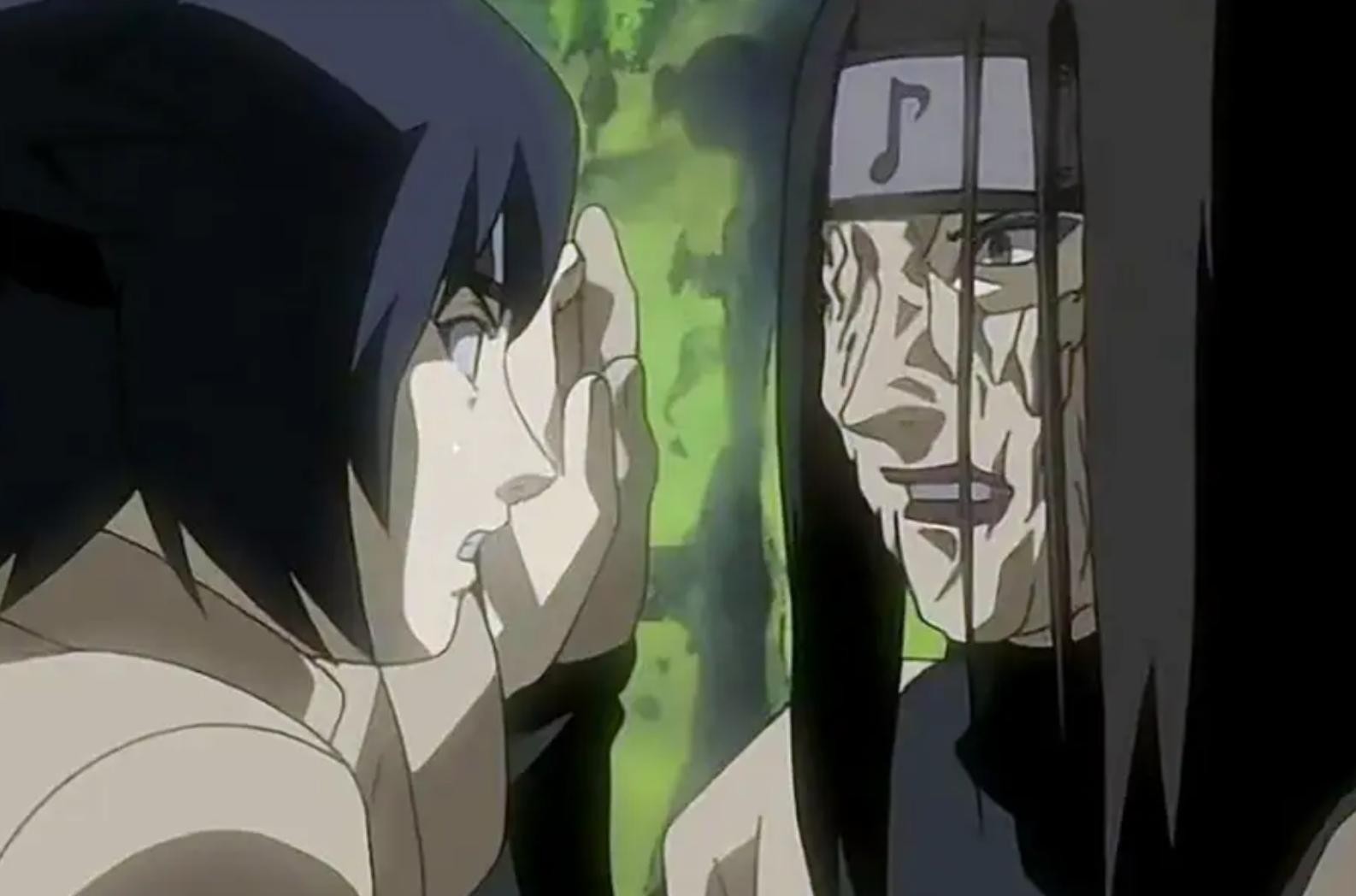 御手洗红豆与大蛇丸,在第一次忍者考试中,红豆对战大蛇丸,为了限制大蛇丸逃跑,她用苦无将大蛇丸的手和自己的手钉在树上,然后借用了大蛇丸的手来结印,施展了“双蛇相杀”。