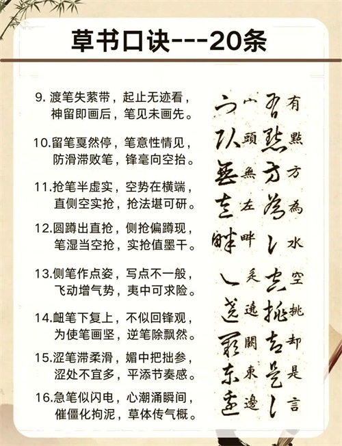 1. 保持心态平和:学习草书需要耐心和毅力,不可急于求成。保持平和的心态,更有利于技艺的提高。千万不要标新立异,巧立名目,哗众取宠。