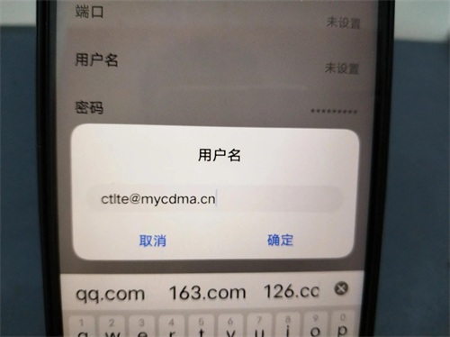 输入 ctlt@mycdma.cn,输入完成后点击确定。同样要注意全部小写,不能大写。(如上图所示)