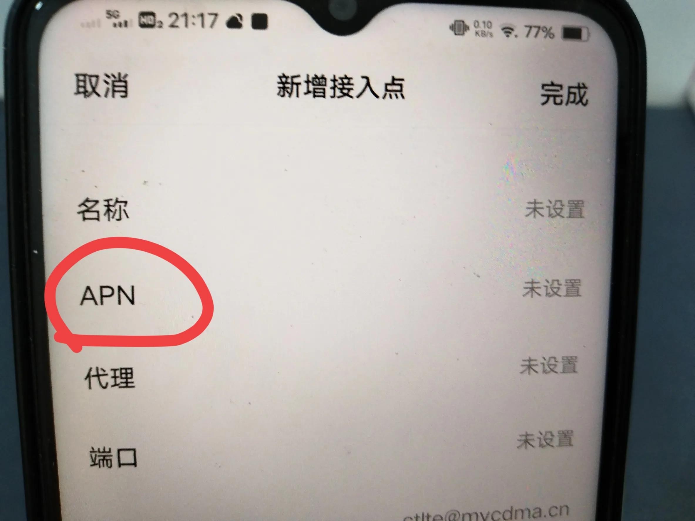 第二步设置 APN 协议,默认设置也没有,点击进入(如上图所示)