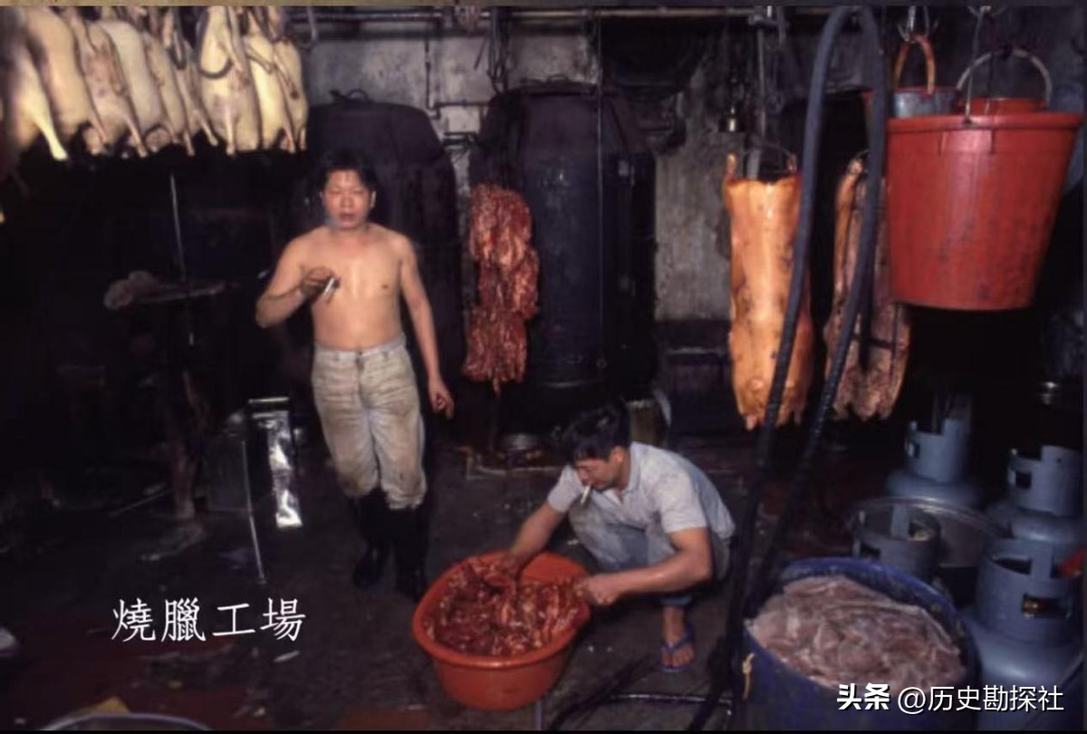 这是一个制作烧腊的工厂,同鱼蛋工厂一样,这里的工人也是没有任何卫生保护的情况下,一边抽着烟一边工作,没有一点卫生意识。