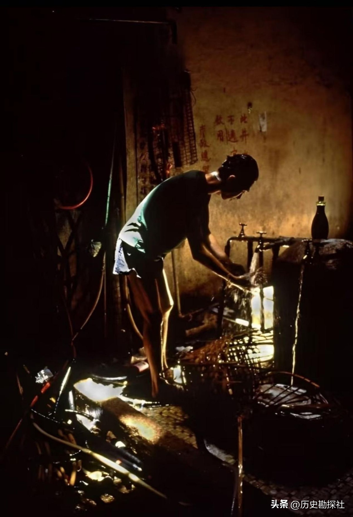 照片中是城寨内居民生活的真实环境,墙壁上的漆早已泛黄脱落,角落里更是埋藏了洗刷不尽的污垢。