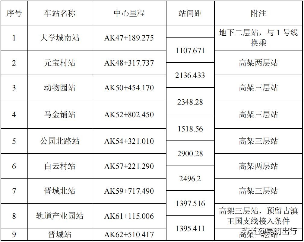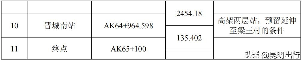 其中,轨道产业园站预留古滇王国支线接入条件,晋城南站预留延伸至梁王村的条件。具体站点如下: