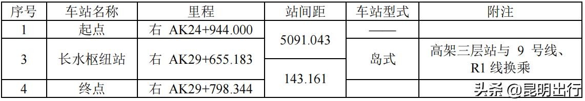 从2022-2027年建设规划来看,6号线新增三期工程,从机场中心站延伸至长水枢纽站。全长4.85km,其中地下线4.54km,高架线0.31km。全线共设车站1座,平均站间距4.85km。其中长水枢纽站为6号线、9号线和R1线三线换乘站及T2航站楼前的桥梁、明挖区间及盾构井部分。具体站点如下: