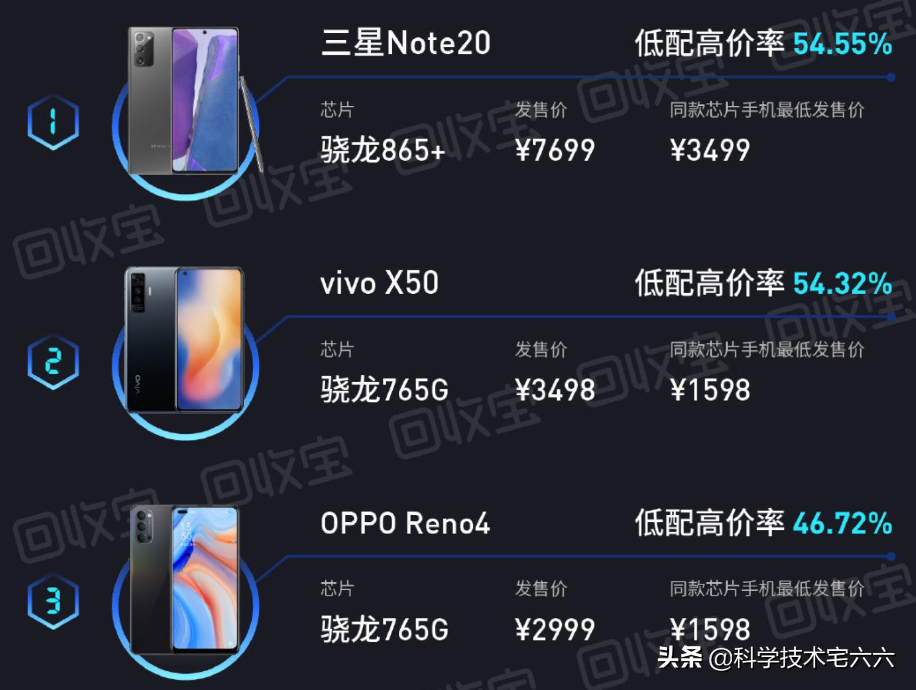 对于“高价低配”手机,小宅一直都是比较拒绝的;近日国内的回收平台给出了今年“高价低配”智能手机排行榜,该榜单通过机器的起售价和同款芯片手机最低起售价的差值率计算,从而得出“低配高价率”,不过这种只看单一芯片的做法,小宅认为看看就好,毕竟买手机不能只看芯片。