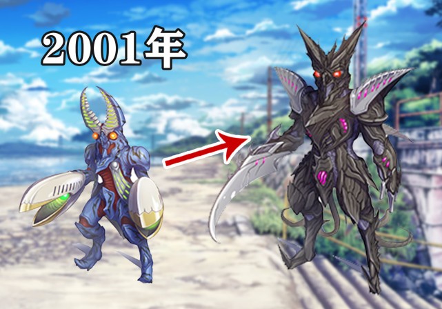 然后介绍的第三版巴尔塔星人,就是从2001开始使用的新巴尔塔,至于新巴尔塔星人首次亮相的特摄剧正是《高斯奥特曼》。而且新版巴尔塔除了身形更为壮硕外,并且还拥有两种形态。而进入第二形态后的巴尔塔,整体形象更是显得霸气无比,不仅身体的颜色发生变化,就连钳子都进化成了镰刀,并且拥有着不亚于高斯奥特曼的力量。