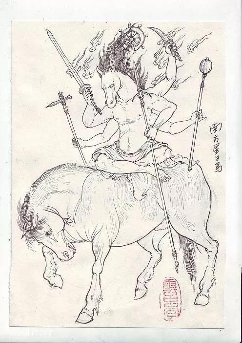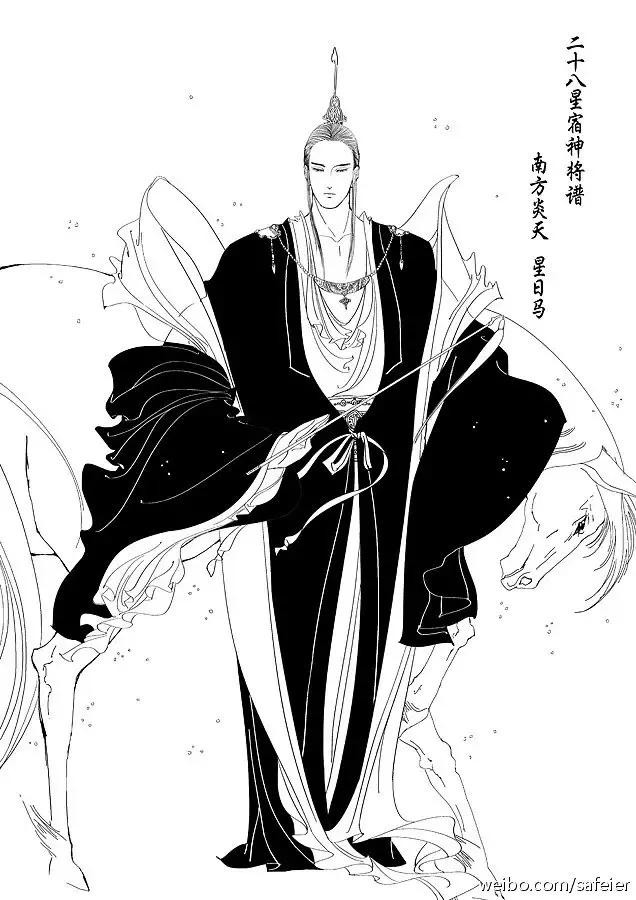 星日马:南方星马星君、星宿天库星君。李忠星君,字君明。南方朱雀七宿之一,二十八星宿之一。姓吕名能(一说名胜子)。