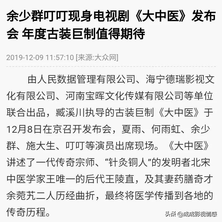绝无仅有!古装大饼《大中医》今天开机,之前官宣主演全部更换!
