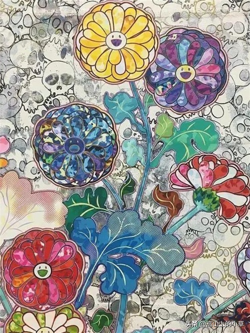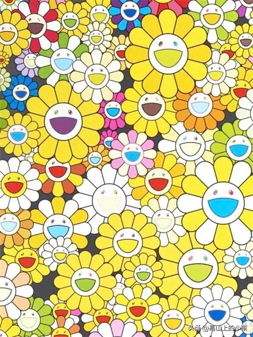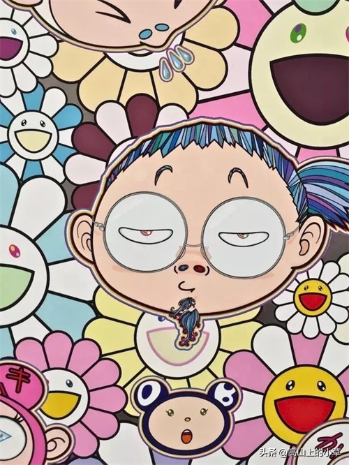 以他的标志性作品“太阳花”为例,这些花朵不仅拥有明亮的色彩,还搭配了卡通风格的眼睛和迷人的笑容,展现出一种天真无邪的美感。然而,其背后却可能象征着广岛和长崎爆炸事件中被压抑的情绪和集体创伤。