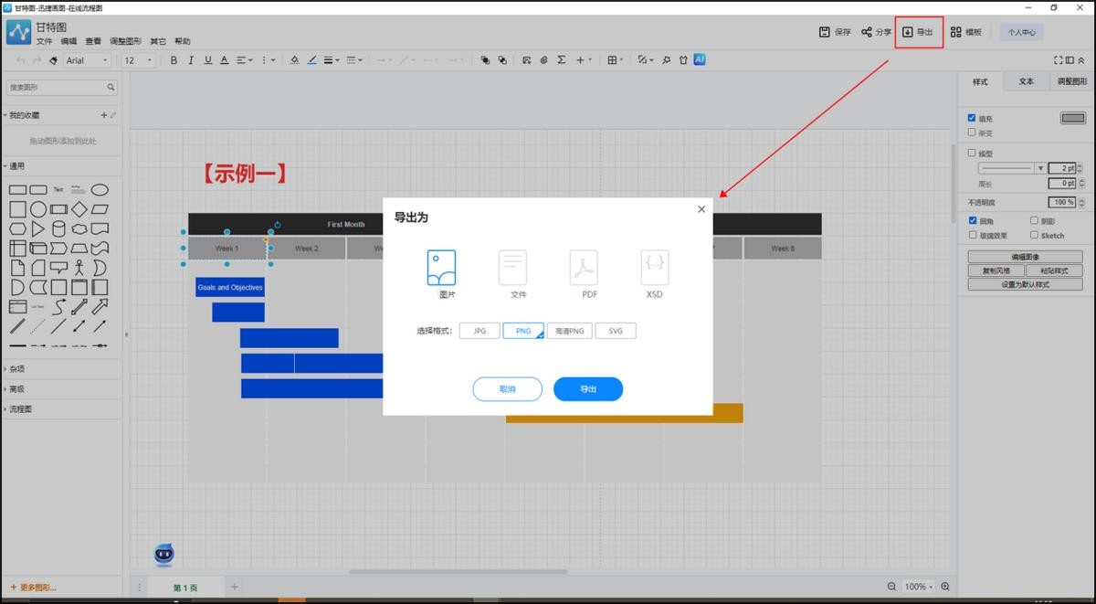 绘制好之后,先点击右上角的【保存】按钮,接着继续点击【导出】,然后选择一种导出格式进行导出就可以了。