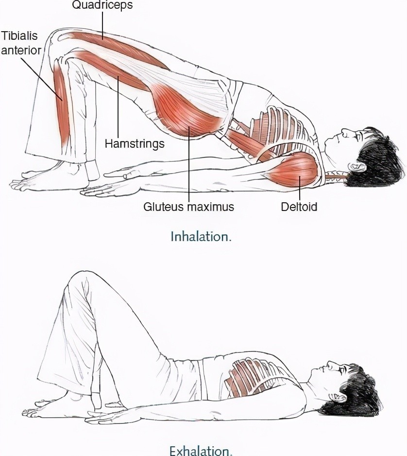 4、上身平躺于地面,双腿弯曲,双臂平伸掌心朝下,上身尽量上抬,过程要慢,坚持十几秒,在放下,重复动作。