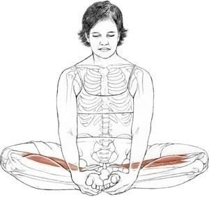1、静坐姿态,使两脚底靠拢,让腿放松朝向地板,两手握住脚踝,手肘放在大腿上,施加力量将大腿缓缓地往下推,直到大腿肌肉感到紧绷为止,动作中配合呼吸。停留10秒钟。