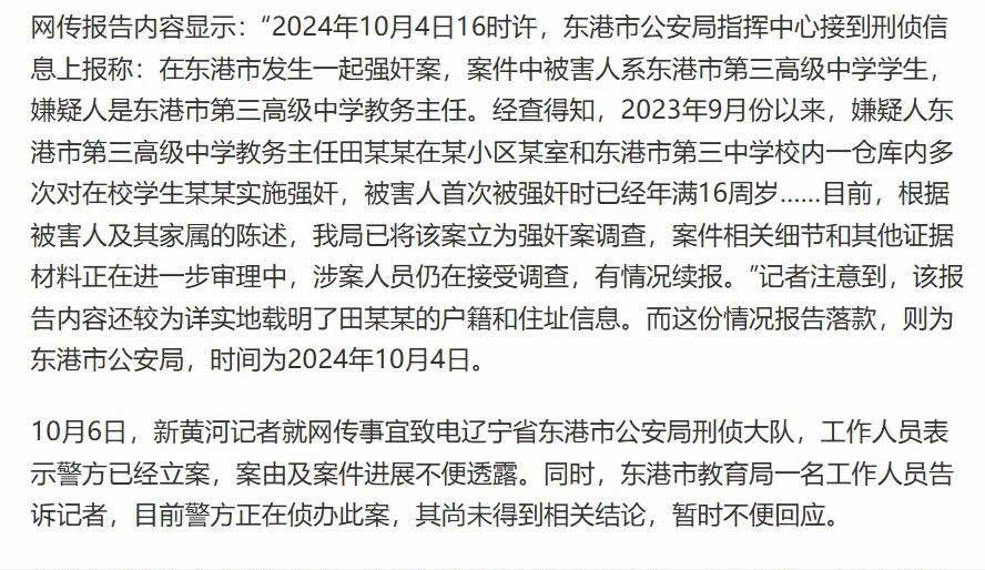 新后续!辽宁一高中教务主任涉嫌性侵学生 细节流出 警方:已在侦办