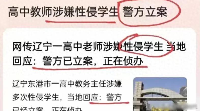 近日,网传辽宁一高中教务主任涉嫌性侵学生,影响十分恶劣。目前警方警方已立案!并被当地人爆出其人品。