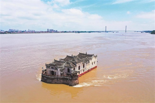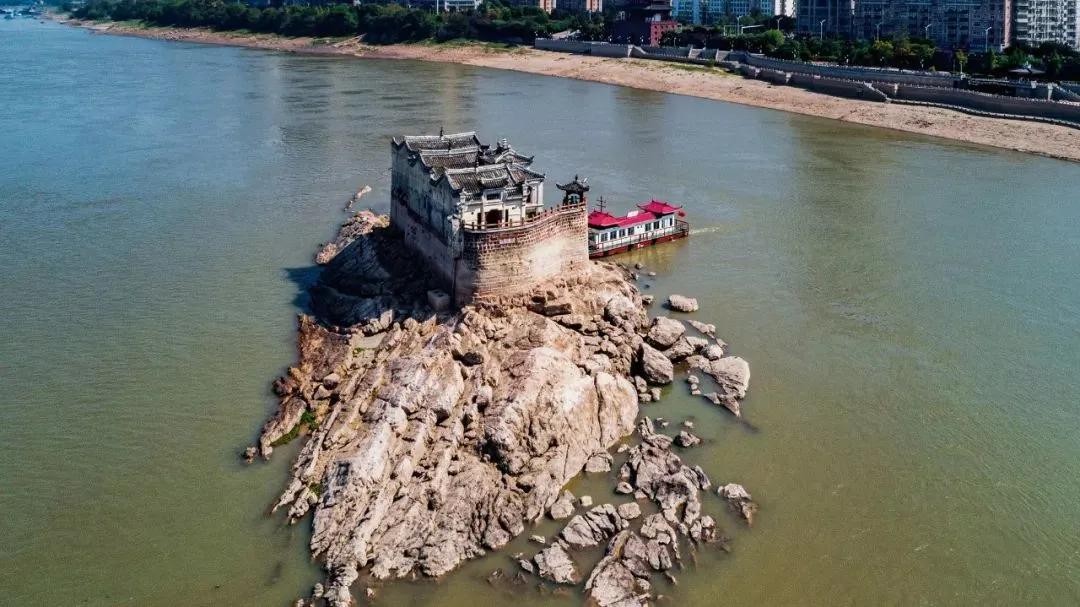 江心古石磐楼阁,矗立在江中的观音阁是一处特别的航行标志物。长江是黄金水道,具有很大的航运价值,古代建造的观音阁直至今日,都能提醒夜间行船注意安全,免撞礁石。观音阁除航行标志外,也是重要的水文标志,阁上有着历年水位的痕迹,是鄂州市民观测长江水位的重要标志性建筑。