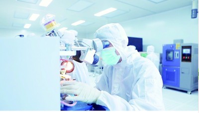 厦门某科技企业的研发人员正在进行微型发光二极管研发。资料图片